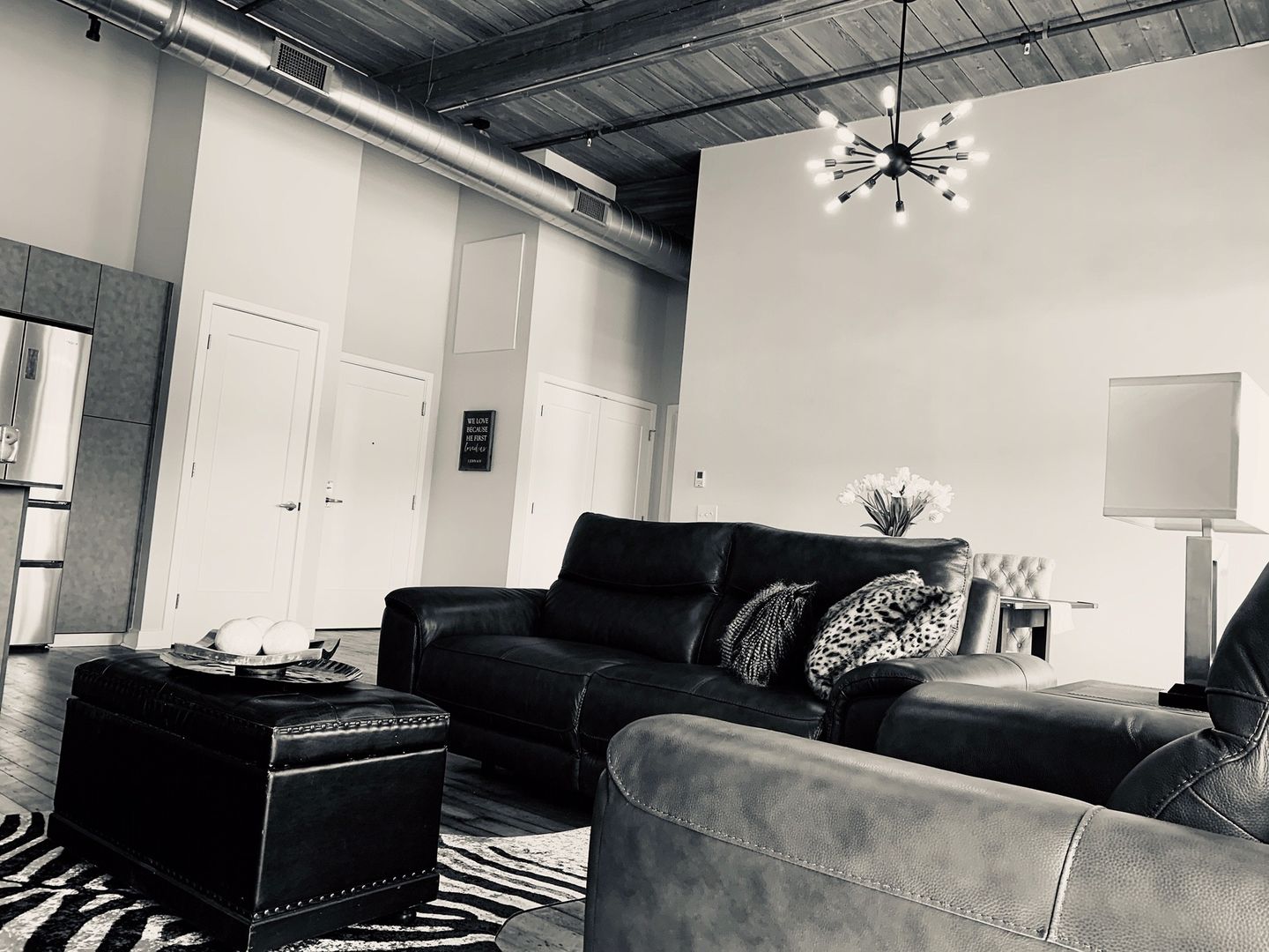 Beautiful Renovated Historical Mill. with luxury European Kitchen , granite countertops, tile bath, Elevator. Washer and dryer in unit. 65in TV mounted on the living room wall